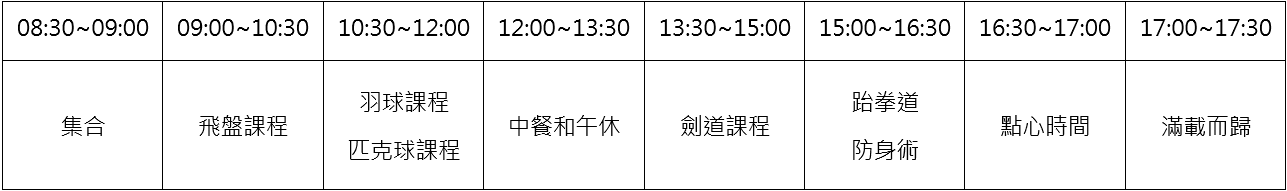 (二)本活動已備妥教學器材,但仍建議自行攜帶羽球拍、匹克球拍、桌球拍,禁止攜帶電玩、貴重物品或其它危險物品等,若攜帶上述物品將由營隊負責保管至活動結束後歸還。
